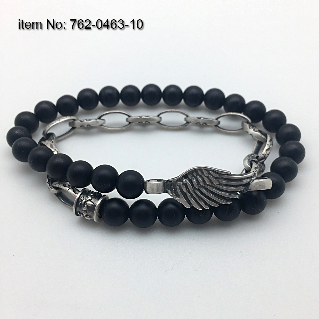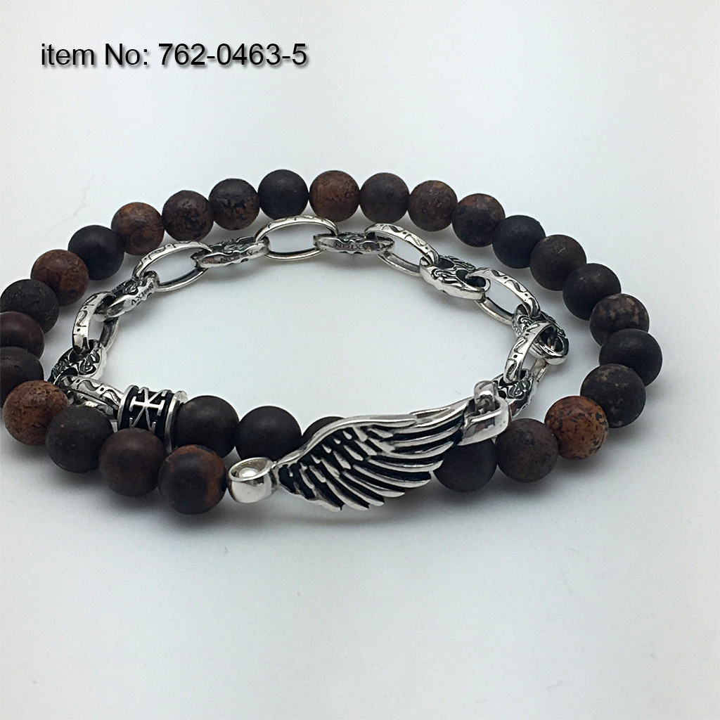 Sterling Silver Bracelet design double wrap with chain and on 8 mm beads