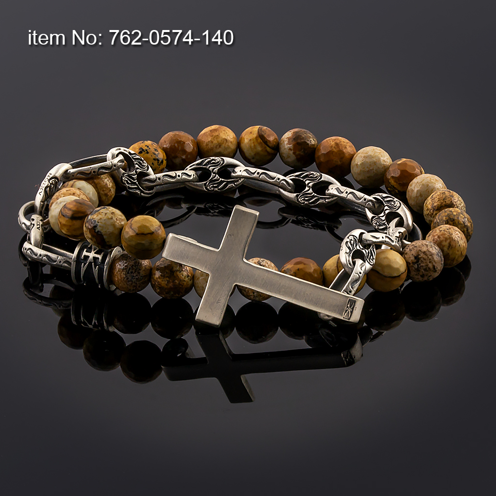 Sterling silver double wrap bracelet with cross, chain and beads - Click here for more colors -