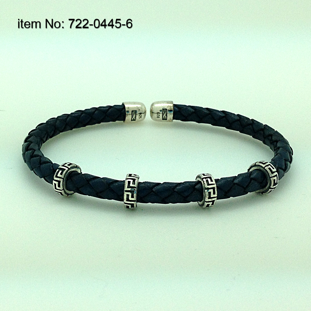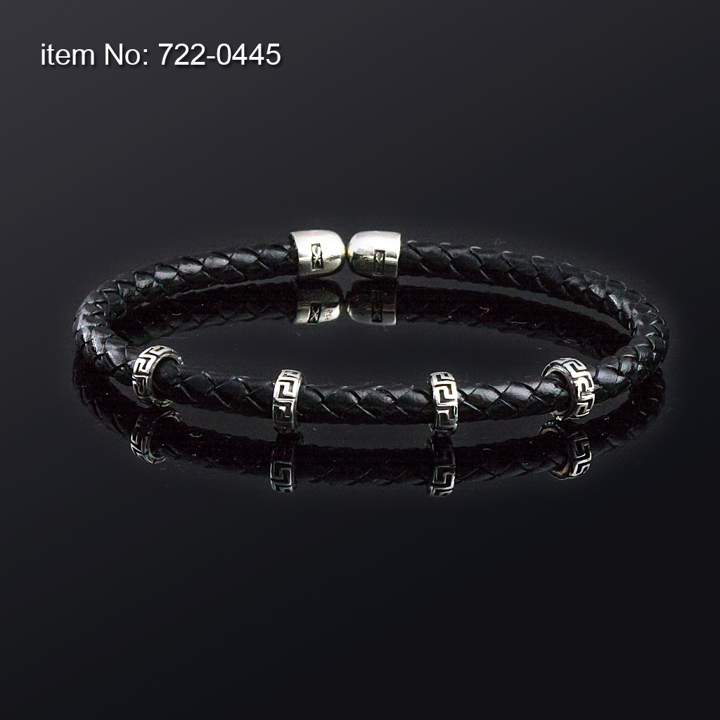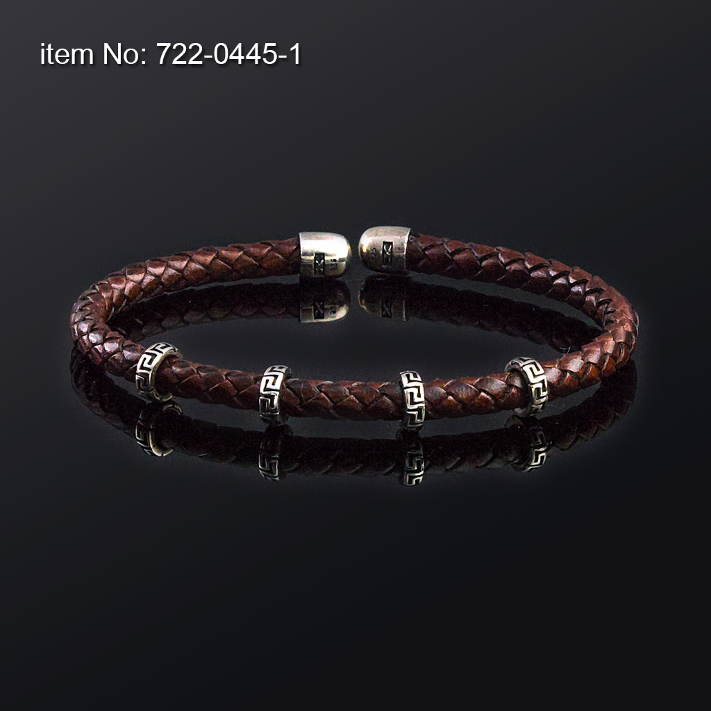 925° Ασημένιο Βραχιόλι με μοτίφ μαίανδρος και γνήσιο πλεκτό δέρμα κόκκινο - Πατήστε εδώ για περισσότερα χρώματα -