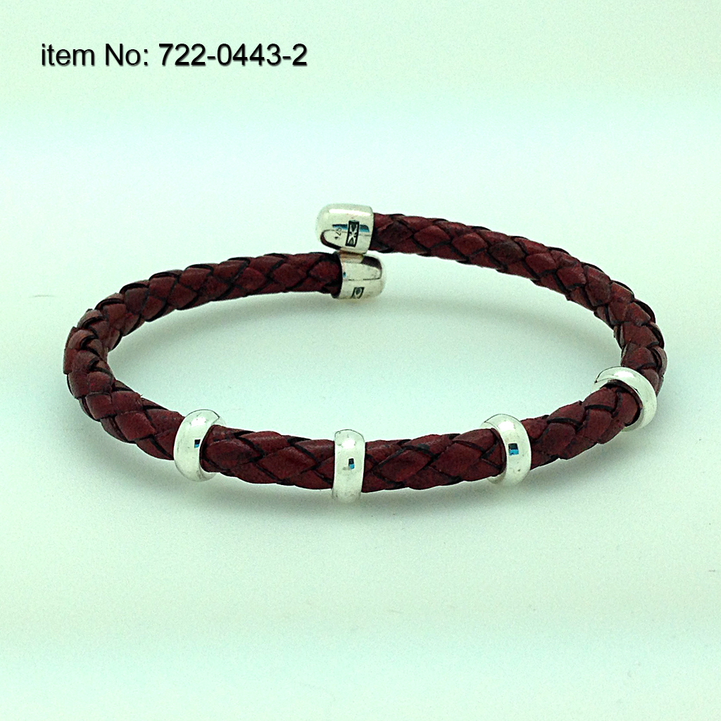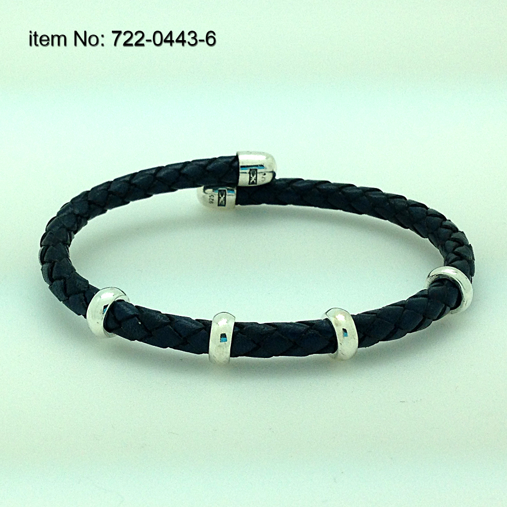 Ασημένιο Βραχιόλι με ροδέλες και γνήσιο πλεκτό μαύρο δέρμα