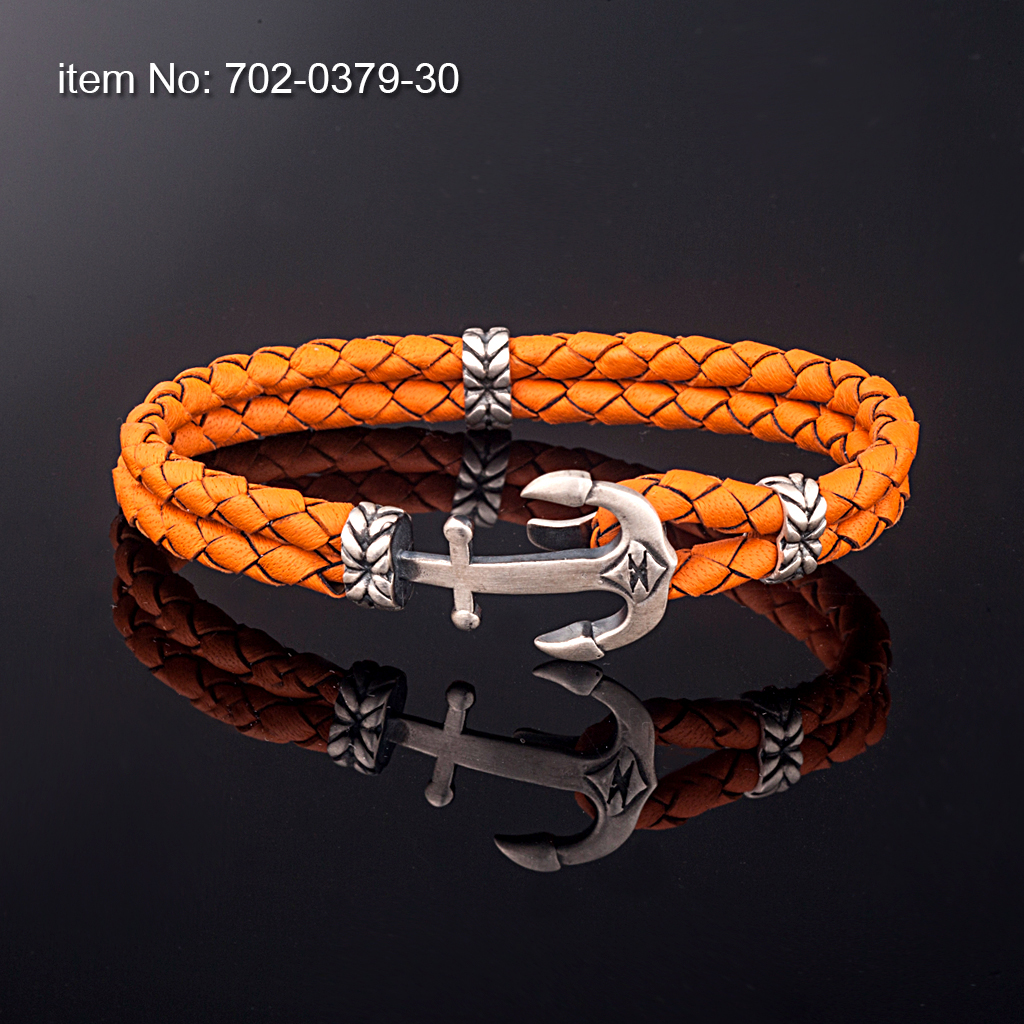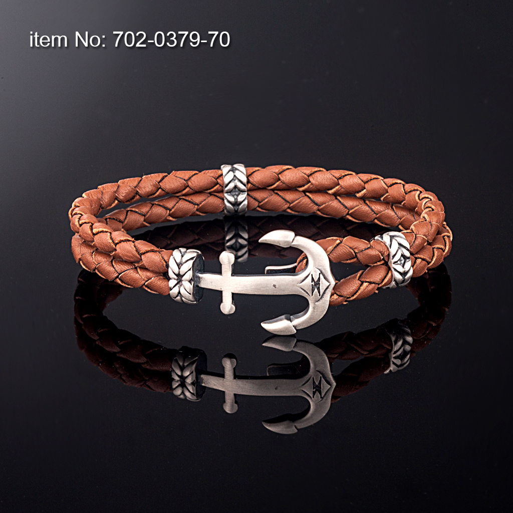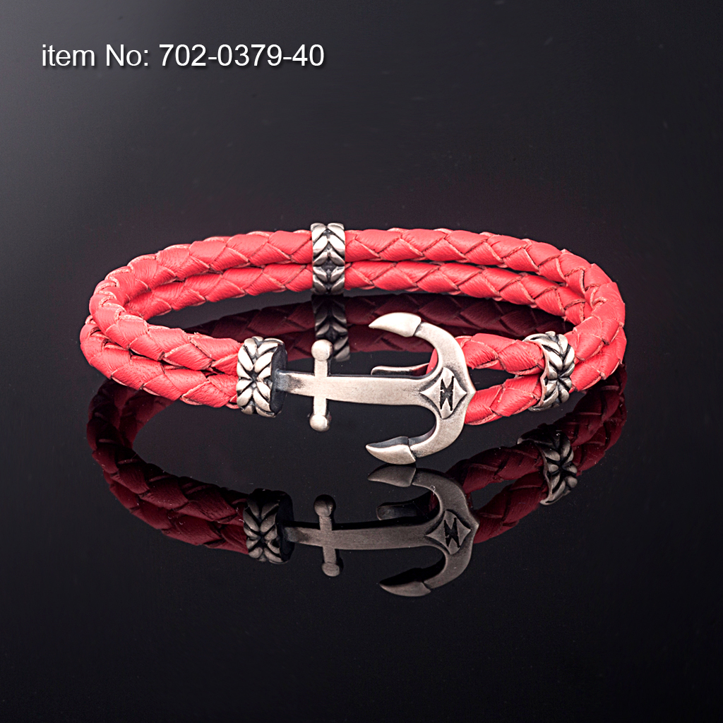Ασημένιο βραχιόλι 925° με μικρή άγκυρα (21 mm) και με γνήσιο διπλό στρογγυλό δέρμα κόκκινο