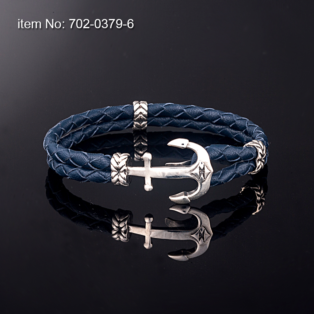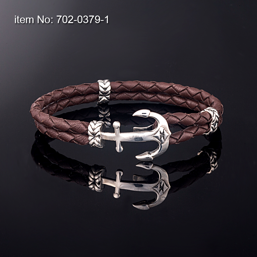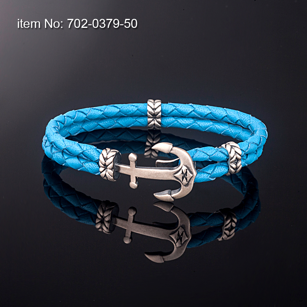 Ασημένιο βραχιόλι 925° με μικρή άγκυρα (21 mm) και με γνήσιο διπλό στρογγυλό δέρμα κόκκινο