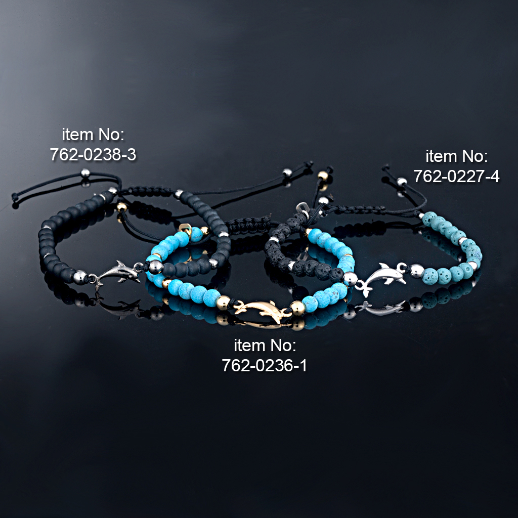 Bracelet with Sterling silver dolphin Bracelet dolphin with Sterling Silver Band On Adjustable Cord Gold-plating / rose gold-plating optional with Black Onyx or with magnesit blue or with black and turquoise lava For Men or Ladies Hand crafted in Greeceby AXION JEWELRY DESIGN