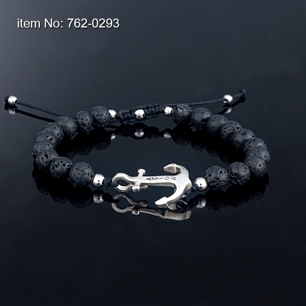 Bracelet with Sterling silver Anchor and lava Bracelet with Sterling silver Anchor and lava On Adjustable Cord Gold-plating / rose gold-plating optional or also with turquoise lava or black Onyx or white quartz or rose quartz For Men or Ladies Hand crafted in Greeceby AXION JEWELRY DESIGN