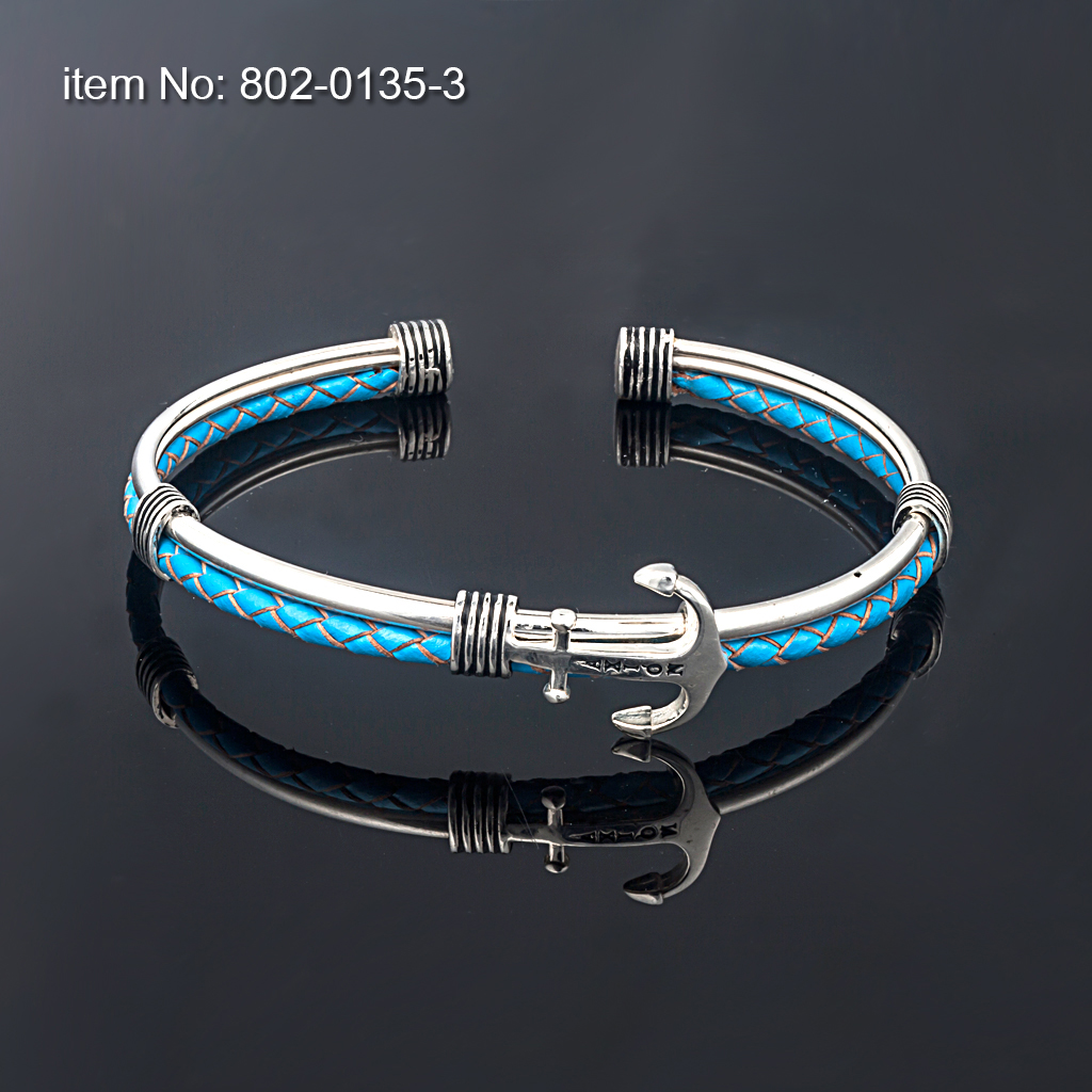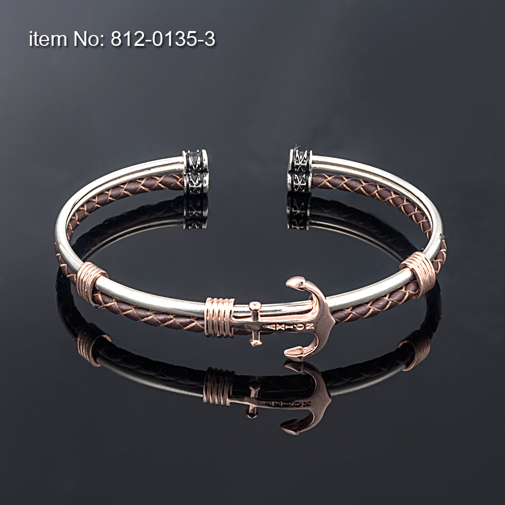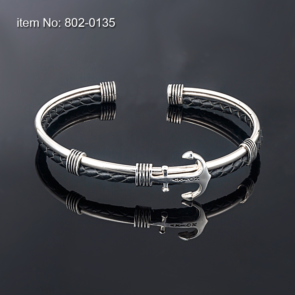 Sterling Silver Anchor flexible Bracelet Sterling Silver Anchor flexible Bracelet On genuine leather (colors as shown in pictures) For Men or Ladies Gold-plating / rose gold-plating optional Hand crafted in Greeceby AXION JEWELRY DESIGN