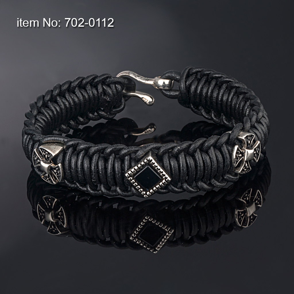 Sterling Silver Bracelet, with Square Black Onyx Center and Maltese Crosses