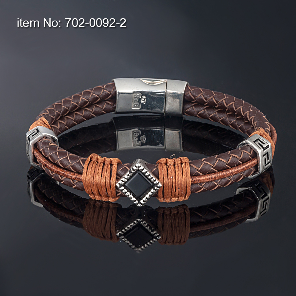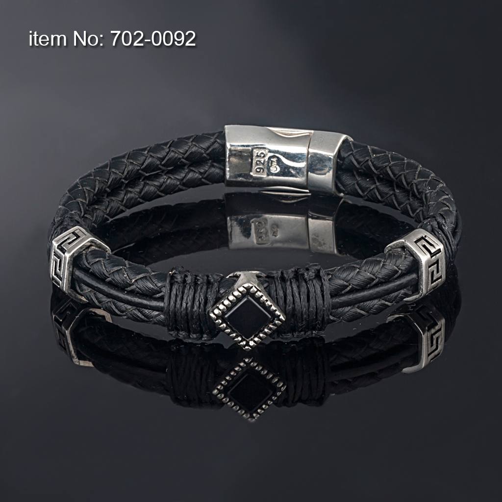 Greek Key with Square Black Onyx Center, Sterling Silver Bracelet