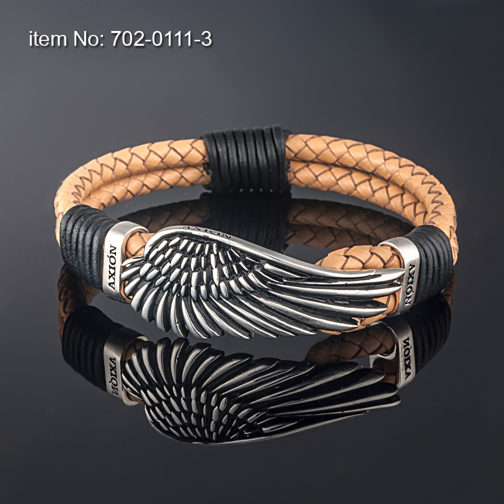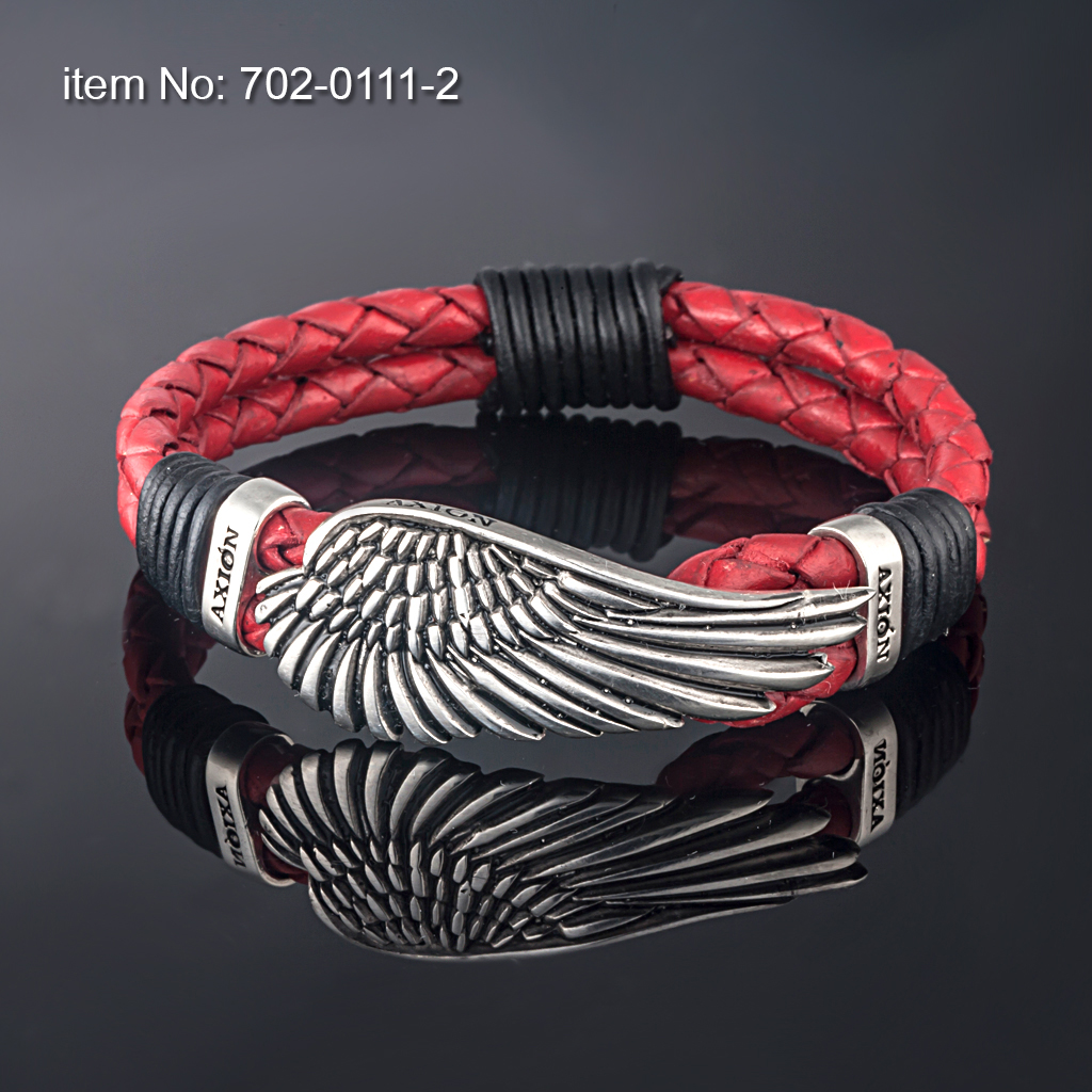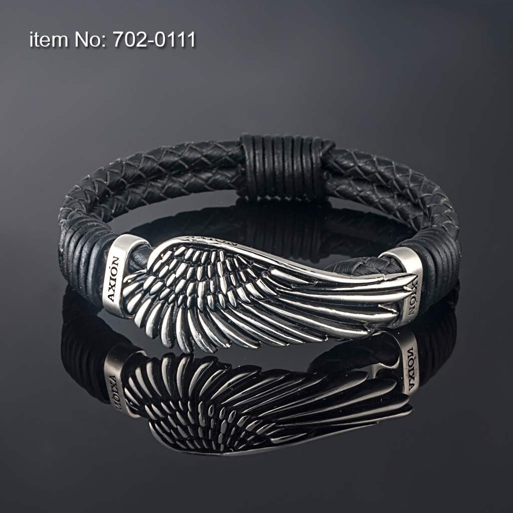 Large Sterling Silver Wing, Surrounded by Two Sterling Silver Bands Bracelet