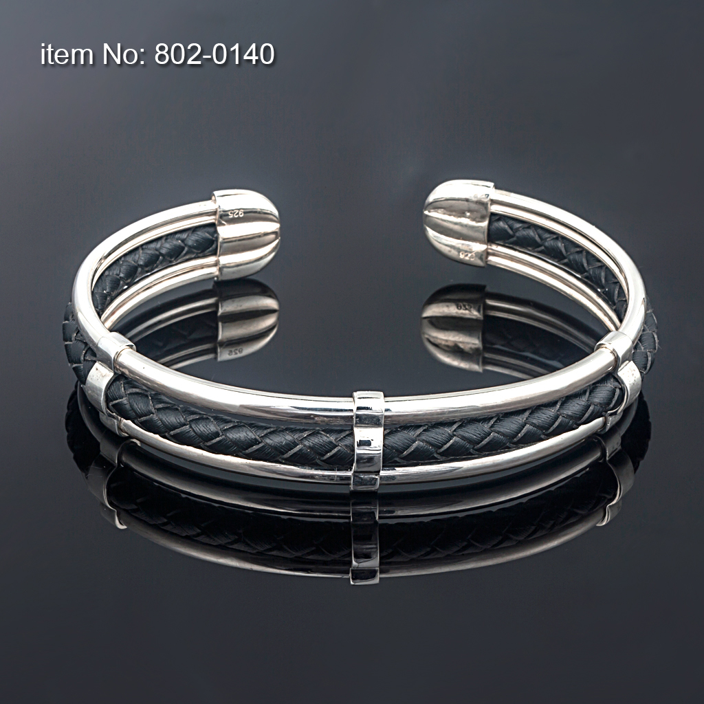 Sterling Silver flexible Bracelet Sterling Silver flexible Bracelet On genuine leather (colors as shown in pictures) For Men or Ladies Hand crafted in Greeceby AXION JEWELRY DESIGN