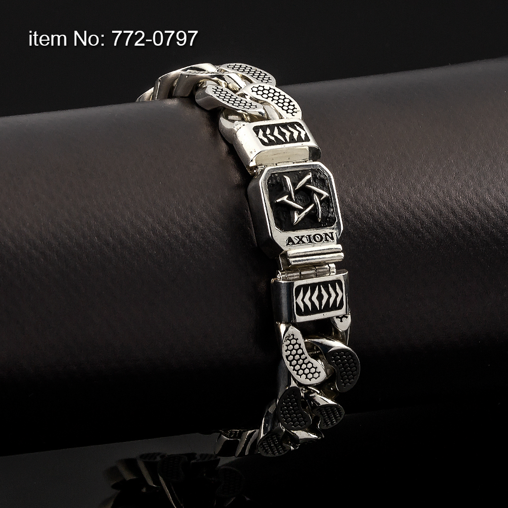 Ασημένιο 925° μασίφ βραχιόλι με υπογραφή AXION και κουβανέζικο σύνδεσμο πλάτους 15.25 mm