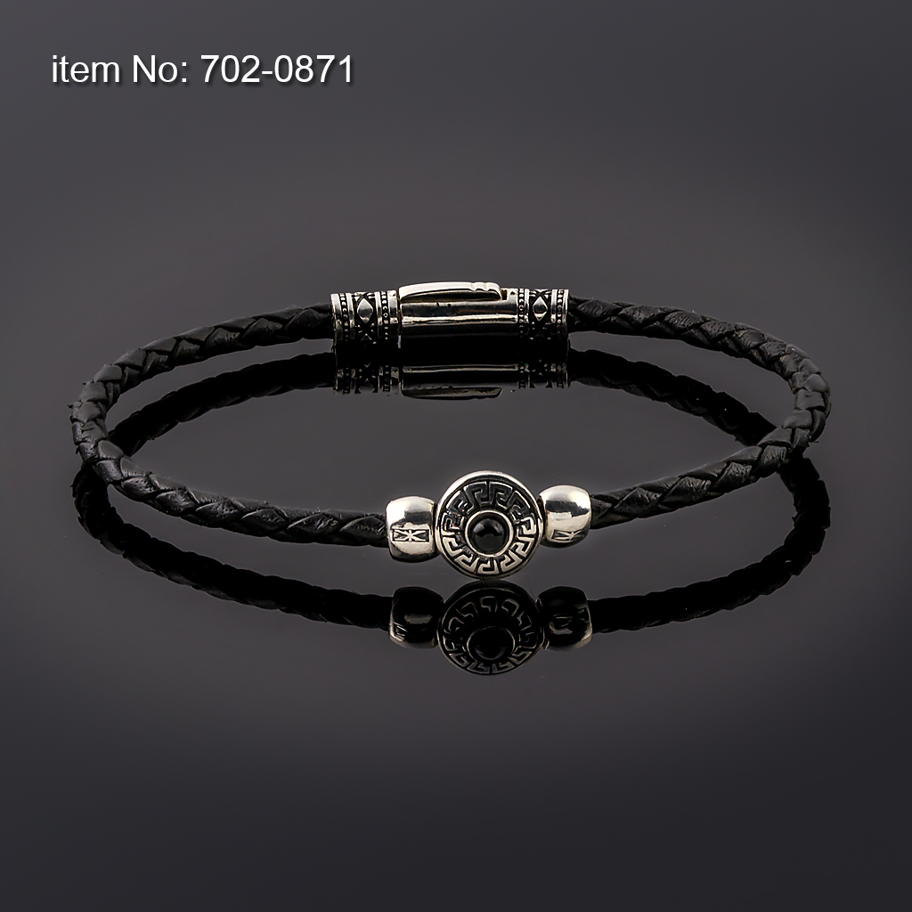 925° Ασημένιο βραχιόλι με σχέδιο γκρέκα & γνήσιο πλεκτό δέρμα - Πατήστε εδώ για περισσότερα χρώματα -