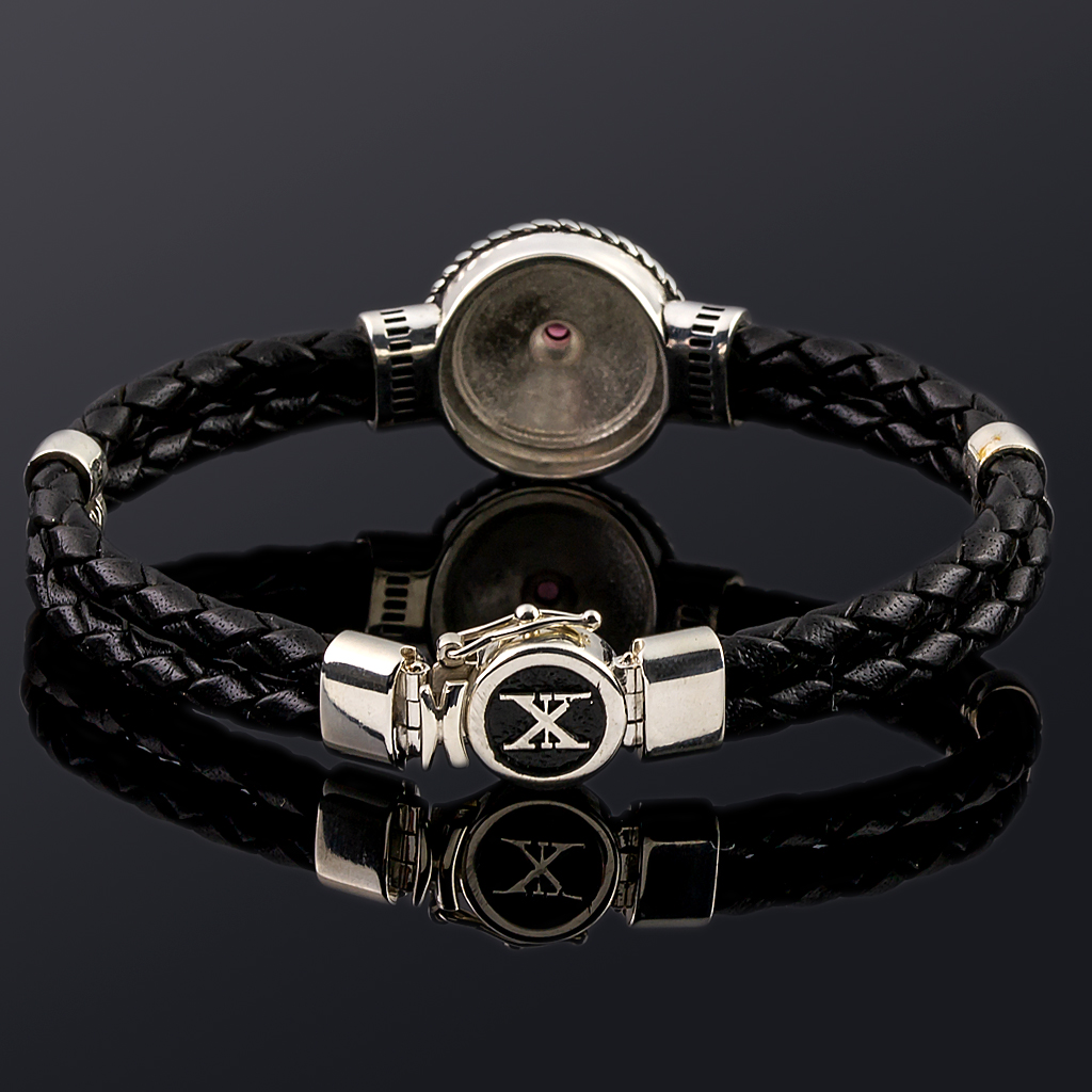 Ασημένιο Βραχιόλι 925° με πυξίδα 22mm και γνήσιο μαύρο δέρμα 4mm