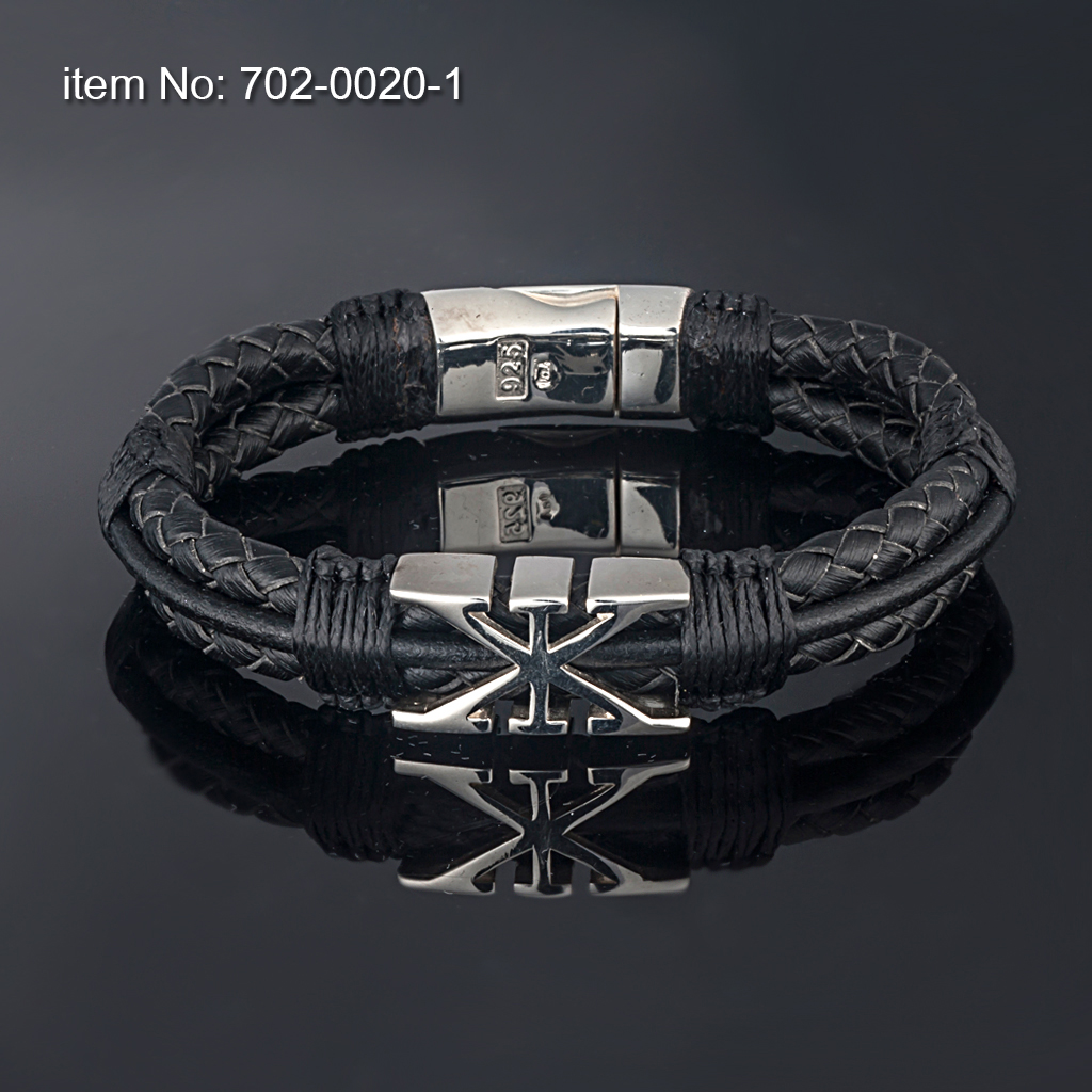 Ασημένιο βραχιόλι με μοτιφ με την υπογραφή AXION (12 mm) και με γνήσιο δέρμα