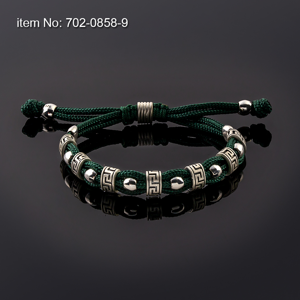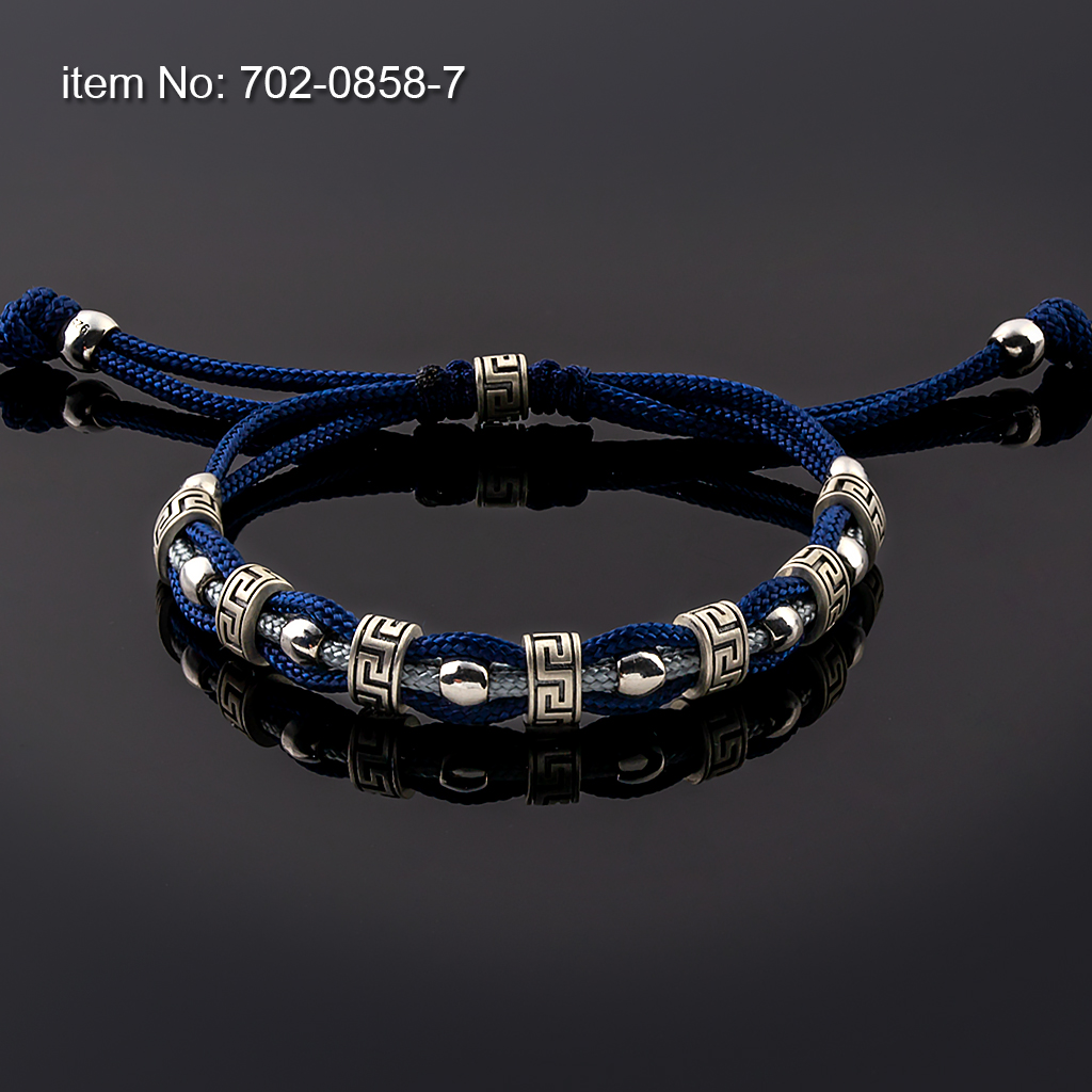 Sterling Silver Bracelet with Greek Key motif and with paracord core - Click here for more colors -