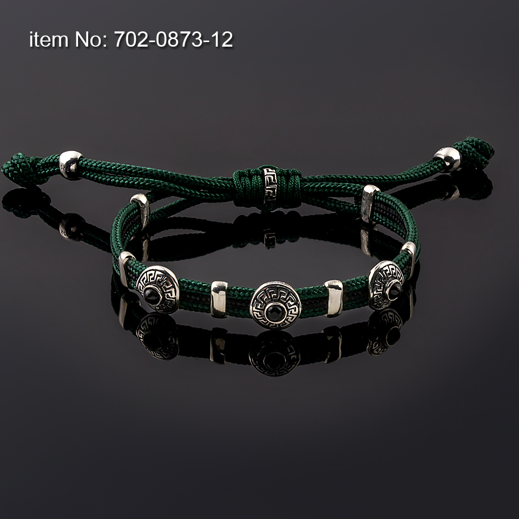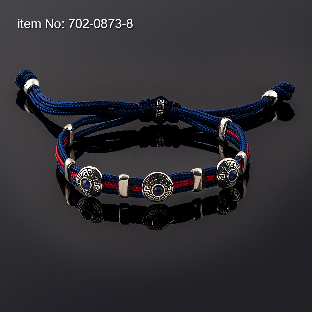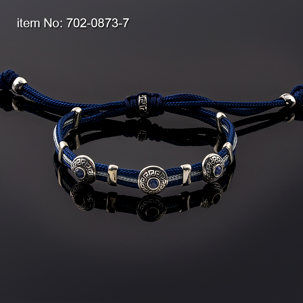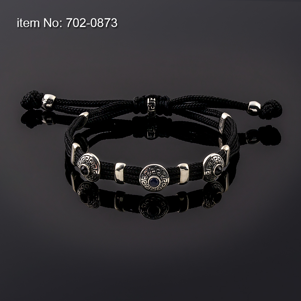 Sterling Silver Bracelet Greek Key motifs with paracord core